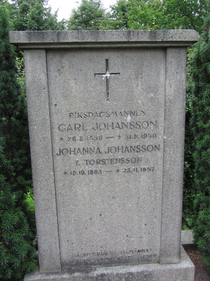 I somras när jag besökte Donationskyrkogården i Helsingborg för att leta upp farbror Karls grav, upptäckte jag att i hans familjegrav ligger förutom hans fru de tre ogifta döttrarna, två andra döttrar och deras makar, en son med fru och ett barnbarn. Gravstenen rests av Helsingborgs allmänna bageriförening där Carl var kontorsföreståndare. Familjen bodde också i en lägenhet ägd av Bageriföreningen enligt Mantalslängd 1941.