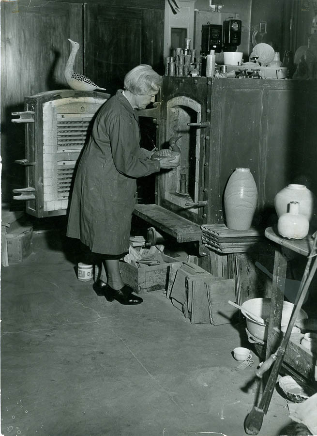Under sin studietid vid Tekniska skolan blev hon bekant med Märta Ankarswärd-Grönvall och genom hennes kontakt anställdes hon på 1920- talet vid AB S:t Eriks Lervarufabriker i Uppsala. Här gjorde hon egna modeller, som hon dekorerade och lät bränna på fabriken. 1925 deltog hon tillsammans med Anna Petrus, Edvin Olers och Arthur Percy i en utställning i butiken Vackrare vardagsvara på Strandvägen i Stockholm. Tillsammans med Märta Ankarswärd-Grönvall ställde hon ut på Stockholmsutställningen 1930. Deras kärl var stämplade S:t Eriks, Uppsala. Modellerna hon tillverkade för S:t Eriks var tebordsbrickor, stora vaser och bålskålar. Hennes färgskala på fajanserna rörde sig från grått-svart-grönt till blått.