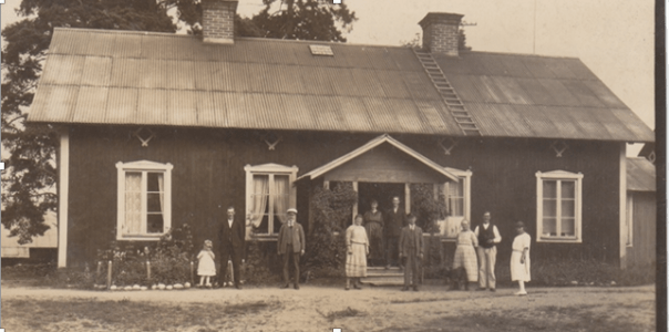 Jag har ett fotografi. PG ser glad, nöjd och stolt där han står med Sanna Sofia. Lite på sidan av står fyra av barnen som är på besök. Alla är finklädda för den här dagen. Det finns några andra personer på besök i det lilla huset i Jungfrusund. Vilka är de? Är det Sannas halvsyskon från Ragunda eller är det PG:s syskon från Lyrestad? Eller är det gamla vänner som hälsar på?
