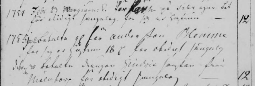1753 dör Pärs hustru Anna. Året därpå gifter Pär om sig för tredje gången, med Karin Andersdotter. Samma år föds deras dotter Anna. Hon föds för kort tid efter vigseln, vilket var straffbart. Så Pär och hustrun får böta till kyrkan för ”otidigt sängalag”. Listan över bötesbrott hittade jag i Födelse- och dopboken av en slump när jag sökte en annan uppgift. Otidigt sängalag visade sig vara ett vanligt brott och var säkert en bra inkomstkälla för kyrkan.