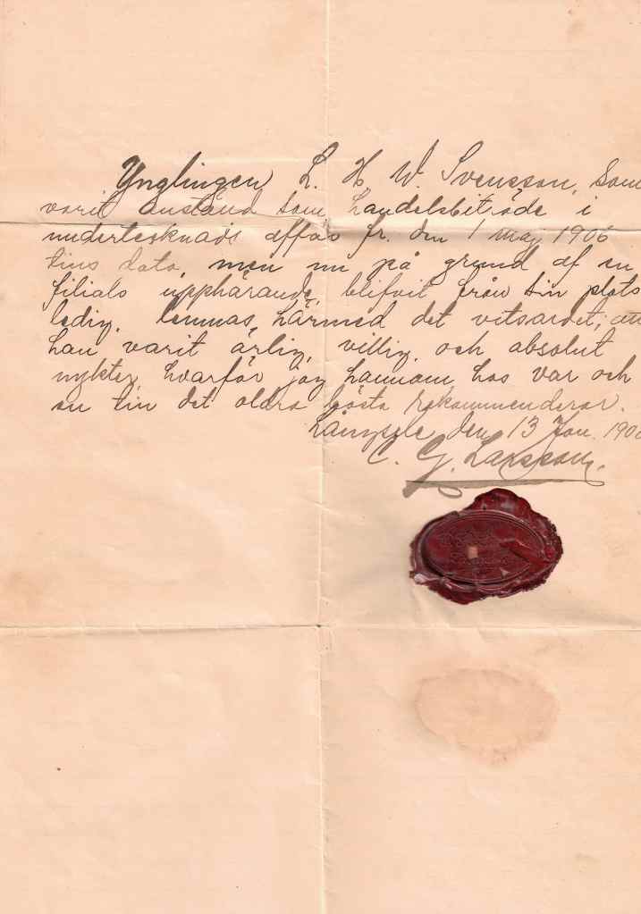 Nu med alla arbetsintyg och skolbetyg ser jag att hans arbetsliv startade tidigt och att han studerade flitigt och försvinner inte som jag tror utan vi kan följa honom på hans resa till att bli elingenjör.