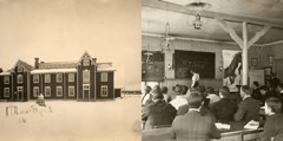 Tekniska afton- och söndagsskolan Foto Stockholms stadsmuseum 1890-1910 samt farfars betyg därifrån