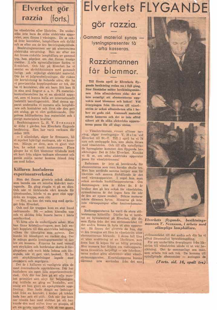 Han anställs vid Stockholms Elverk där mycket arbete pågår för man övergår från likström till växelström. Han blir intervjuad i samband med att Elverket gör en lyckad razzia.