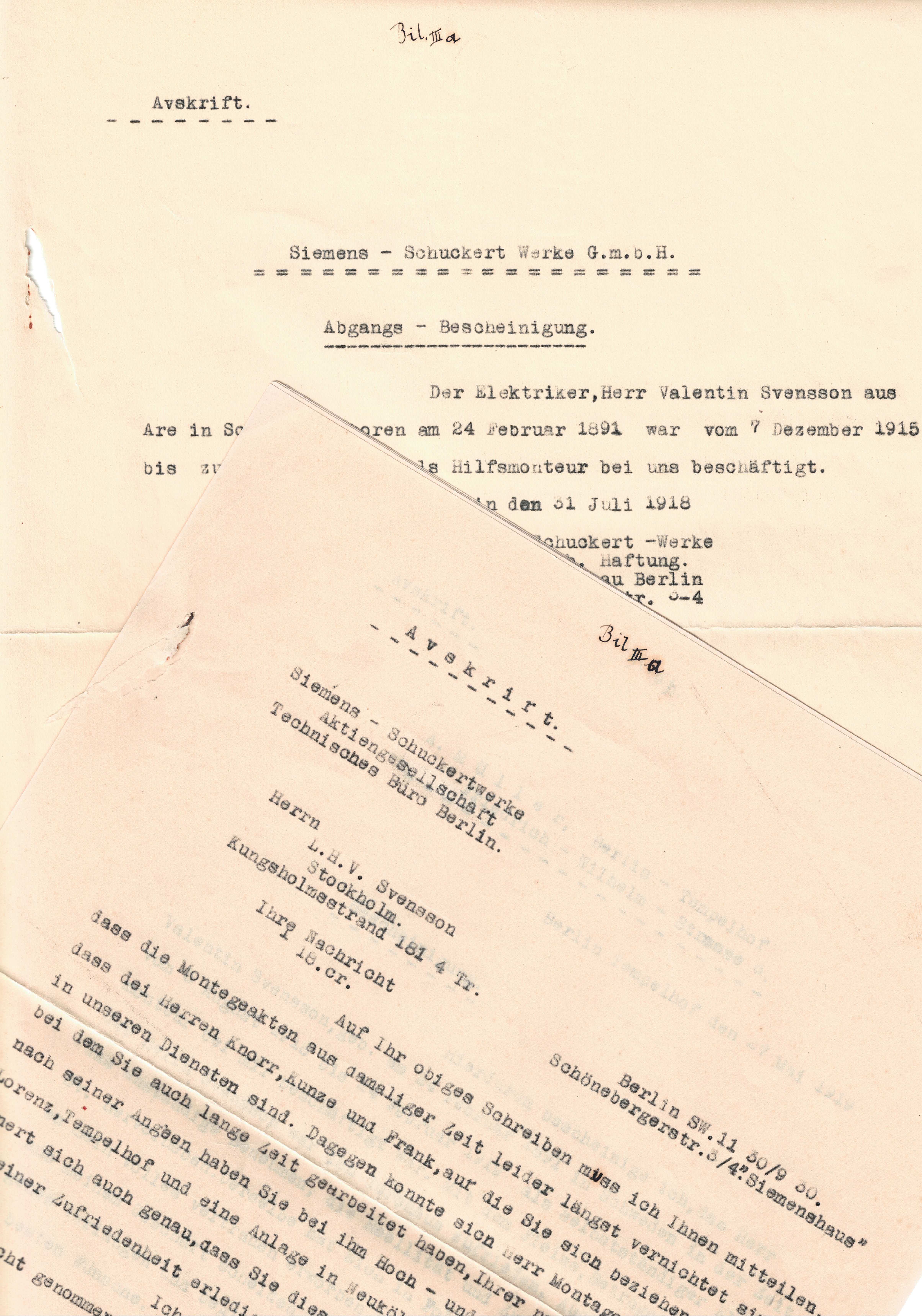 Efter Siemens blev det A.Müller i Berlin-Tempelhof mellan 1918-1919.