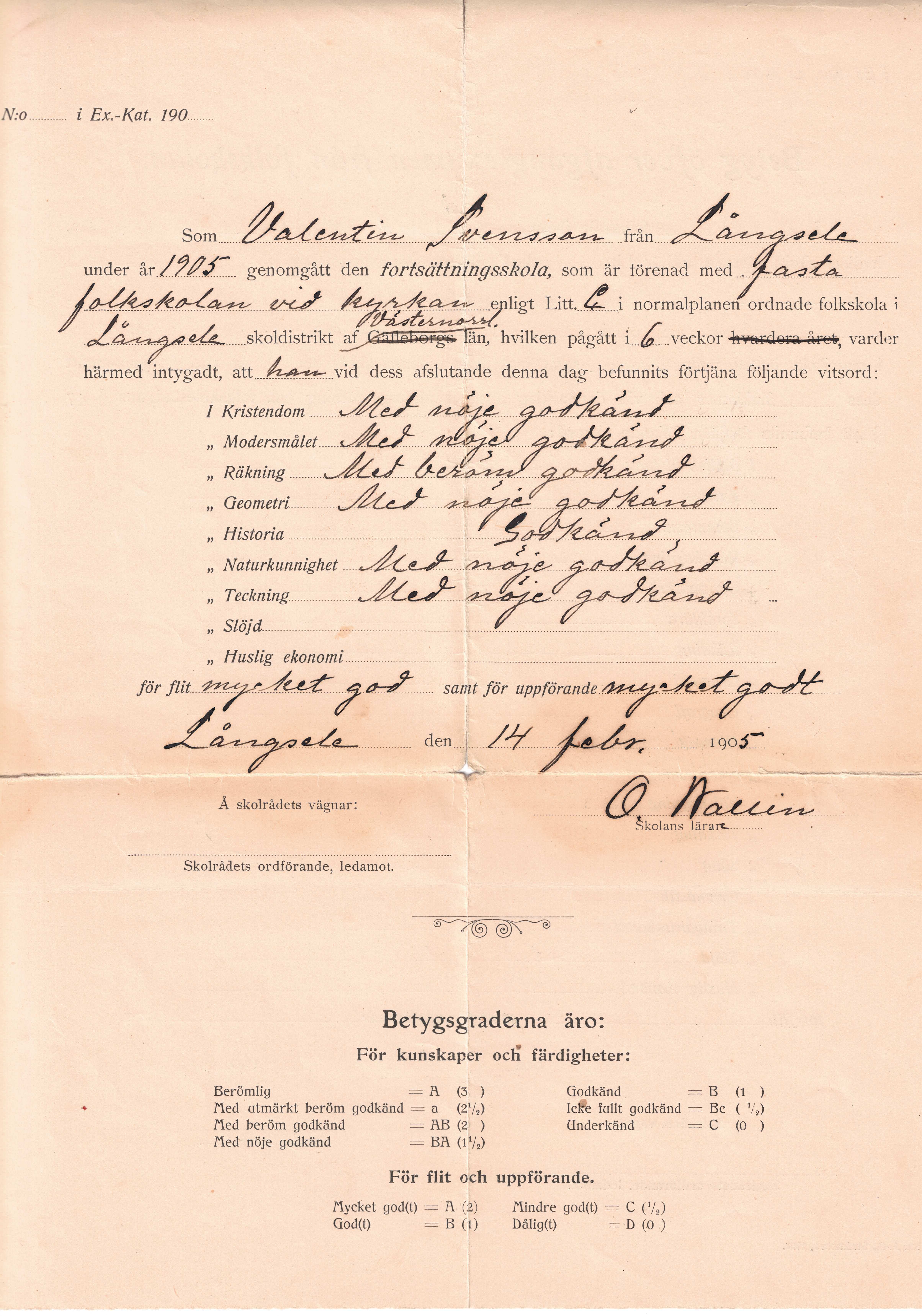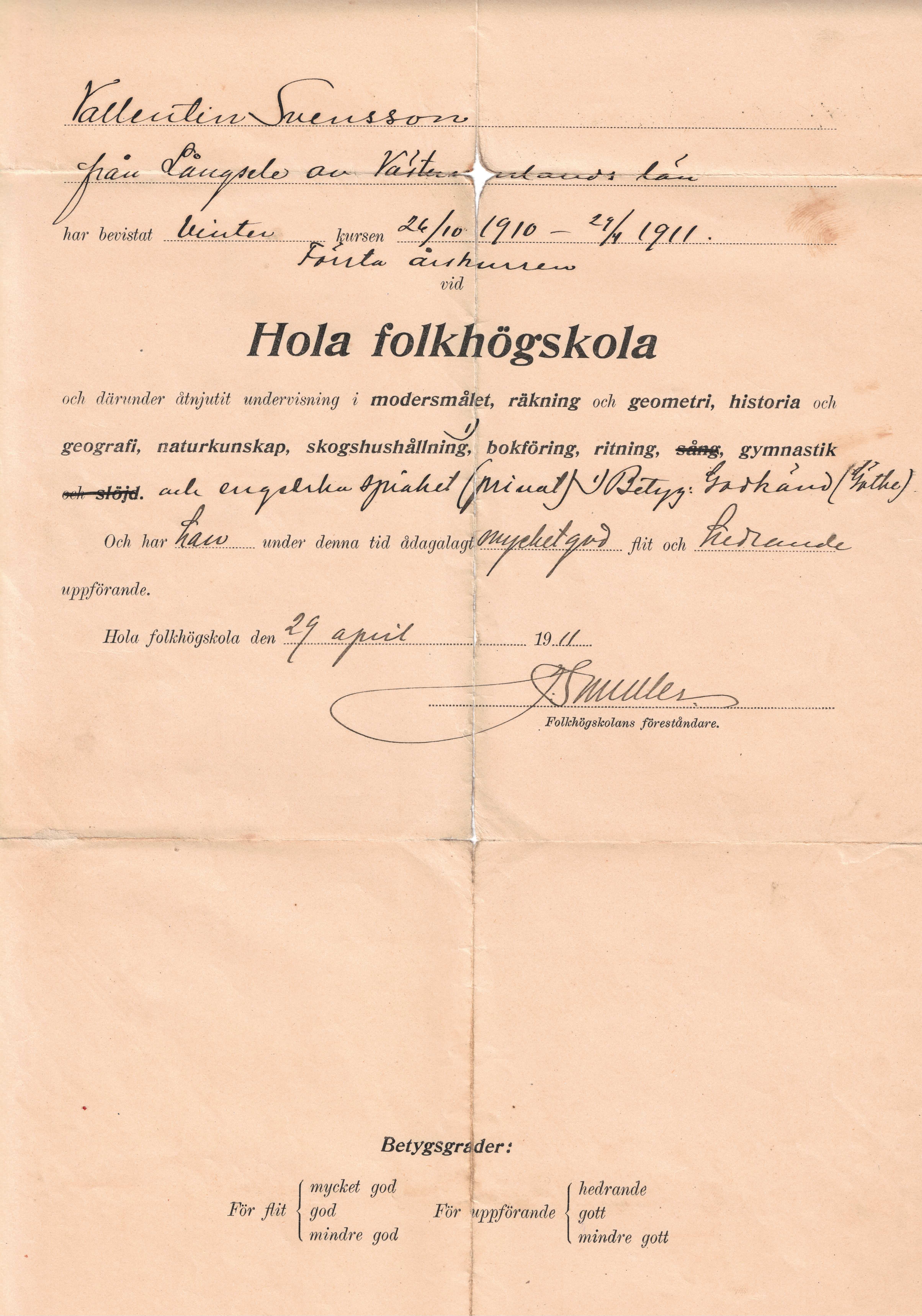 Farfars betyg från Hola folkhögskola