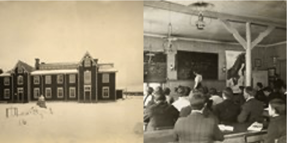 Tekniska afton- och söndagsskolan Foto Stockholms stadsmuseum 1890-1910 samt farfars betyg därifrån