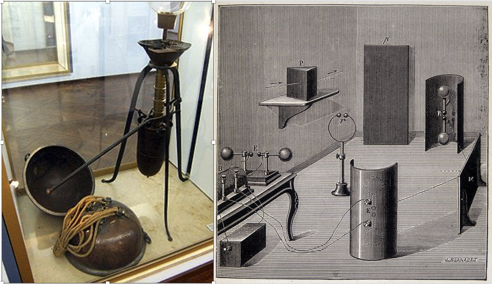 Magdeburgs orginalklot och Herz elektrovågs maskin, Deutsches Museum i München