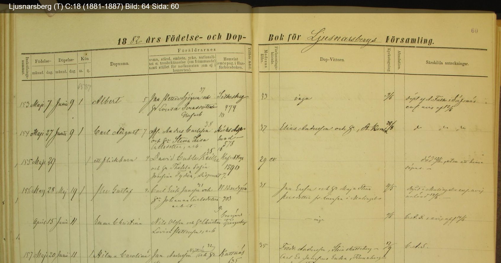På rad 6 står det ” + en flicka — (inte döpt). Född 1882 29/5 och död 1882 13/6 Källa: Digitala forskarsalen