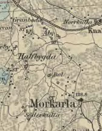 Generalstabskarta Halvbygda och Åby i Morkarla. Källa: Lantmäteriets historiska kartor
