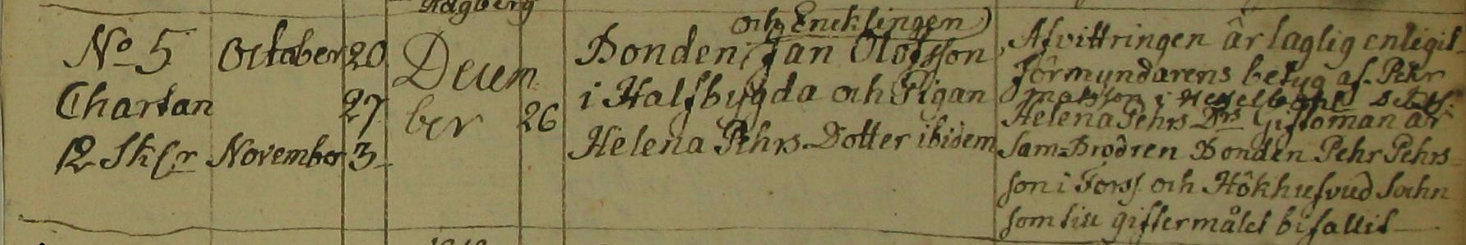 Jag brukar när jag forskar följa mina anor och i många fall deras syskon också från vaggan till graven. Som en del i det arbetet letar jag upp dem i lysnings- och vigselboken, i de fall de gifter sig förstås, och skriver ner allt som står där i mitt släktforskningsprogram. Ibland står bara när de gifter sig, vad de heter och kommer ifrån. Men många gånger står lite mer, till exempel rabblar prästen upp alla skäl till varför de är hinderslösa, ofta också vem som är förmyndare för kvinnan som ska gifta sig och ger sitt godkännande.