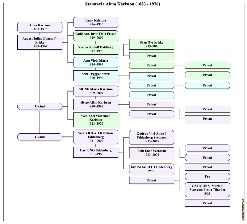 I efterhand kan jag konstatera att det är ett glapp på nästan åtta år mellan de tre första barnen och de tre sista. De tre första barnen är födda mellan 1875-1879 och de tre sista syskonen mellan 1887-1892. Under tidigare sekel var det inte ovanligt att familjer dels födde många barn och dels att något eller flera dog i tidig ålder. Hade jag inte begränsat mig av det jag visste, nämligen att min farmor var en av sex syskon kunde jag kanske räknat ut att något skett under de åtta åren mellan barnkullarna!
