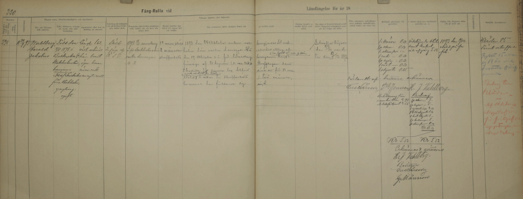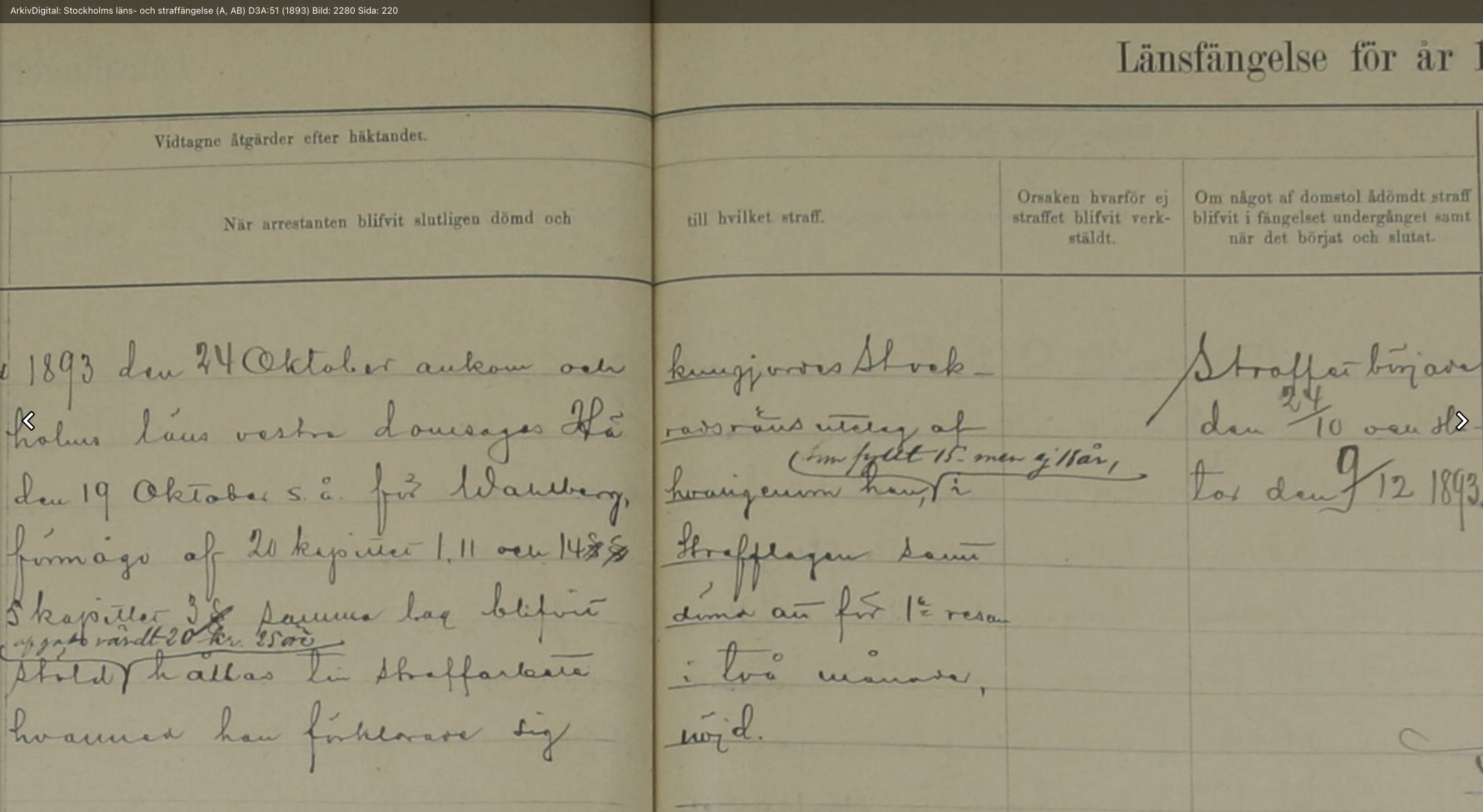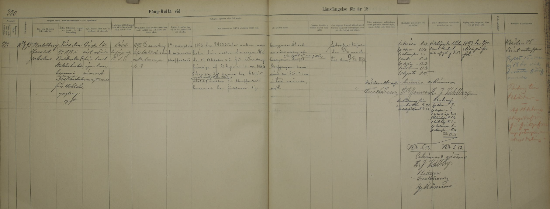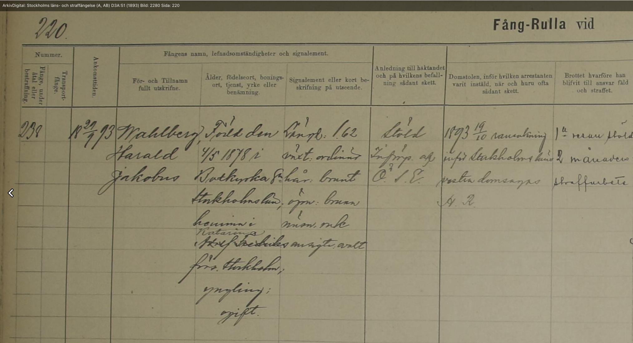 Stockholms läns- och strafffängelse fångrulla 1893 D3A:51 sid 220