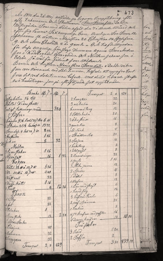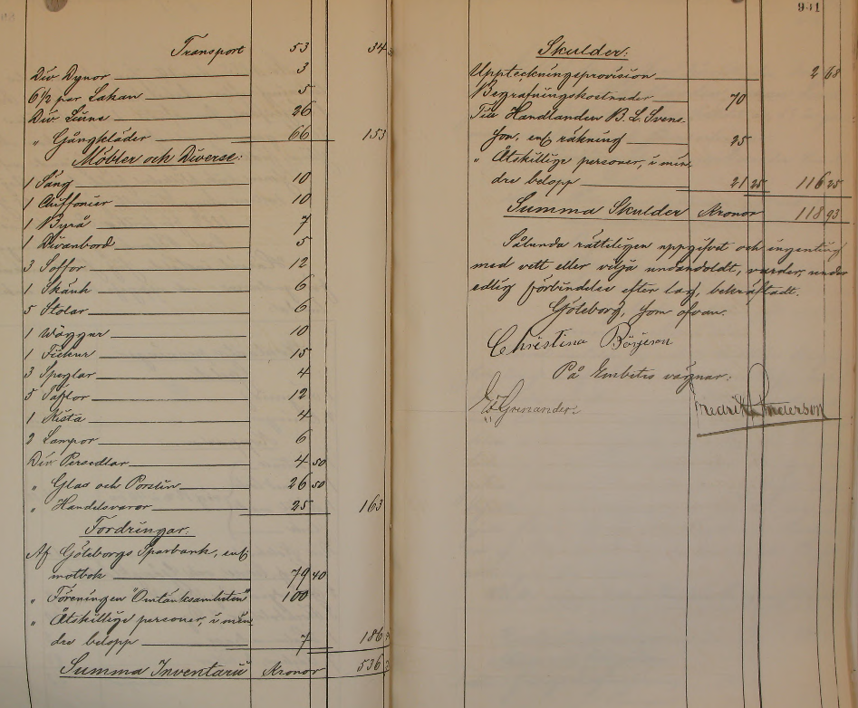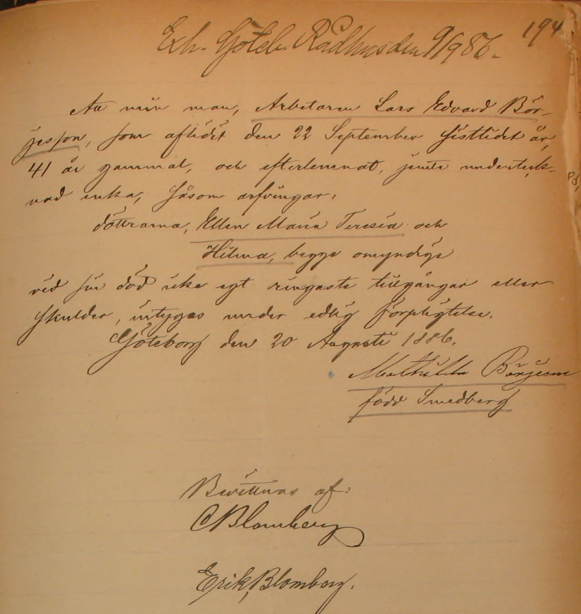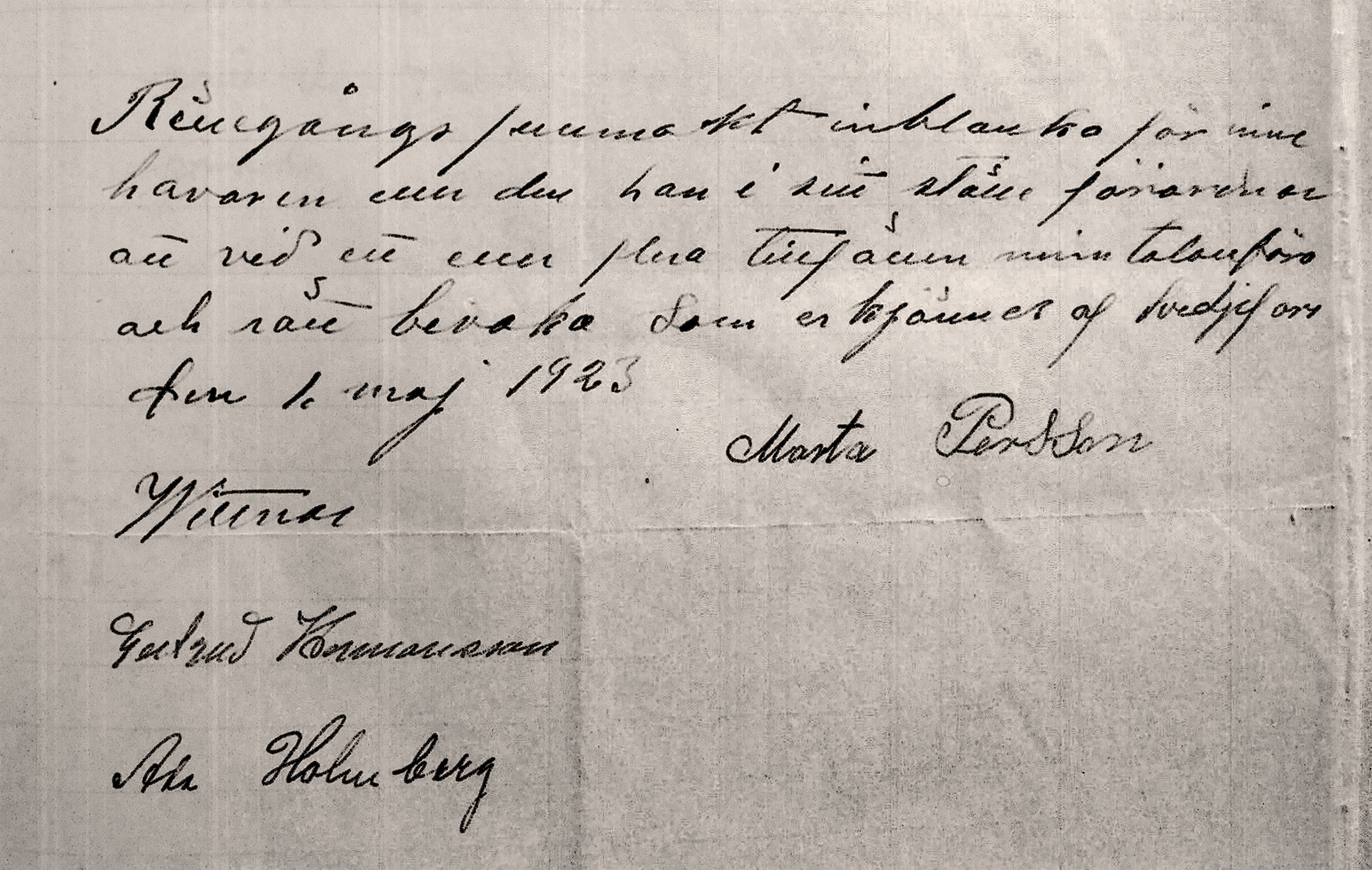 Matildas handstil i bouppteckningen för Lars Börjesson