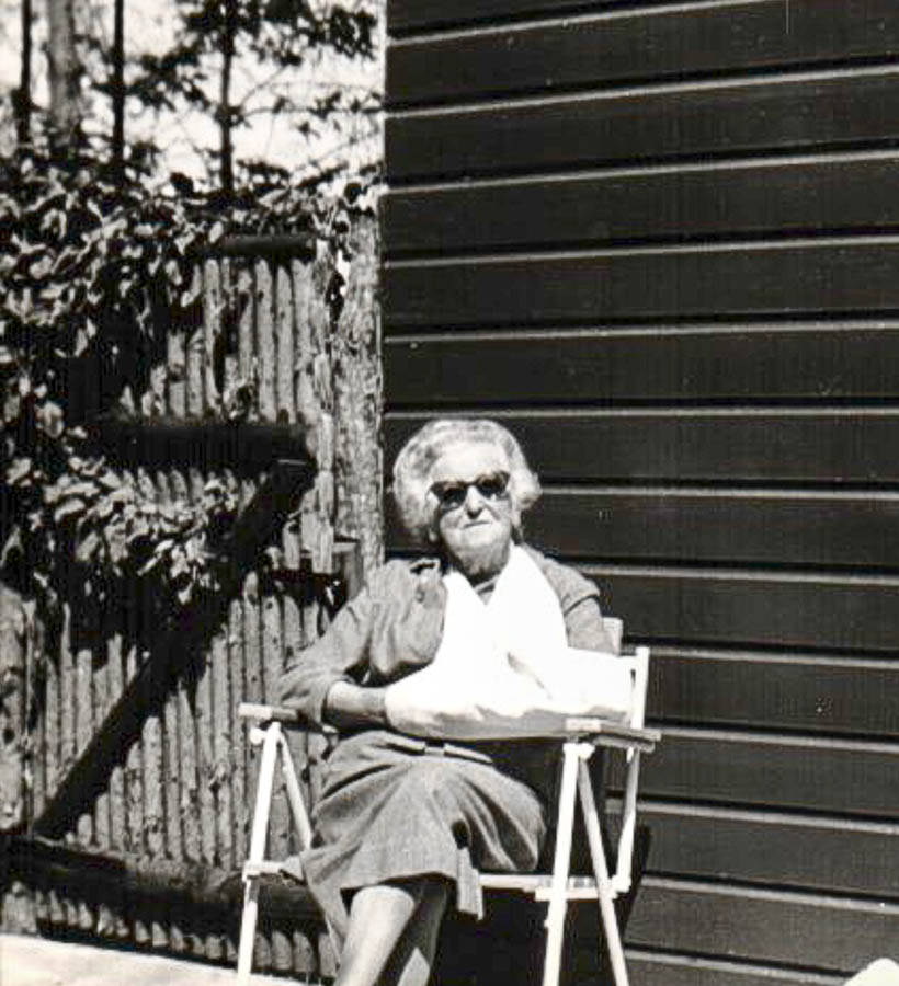 Hon samlade gamla skorpor och torra brödbitar och tog med barnbarnen att mata änderna i Brunnsviken. Hon gjorde Änglatårta på skorpor, mjölk, rårörda lingon och vispgrädde, som var himmelskt god. Hon skötte hemmets städning, och stod vid 90 års ålder och tvättade fönstren på en stege 3 trappor upp åt gatan. Hon följde Harriets familj till Danmark på semester, och lyckades bryta armen. Den gipsades och sedan var det inget mer med det. Hon följde också med familjen till Grängesåsvallen ovanför Idre, och skulle prompt upp på Dalarnas högsta berg Städjan, när hon var 85 år. Upp gick bra, men ner hängde hon mest hela tiden på sin dotter och mågs axlar. Sedan satt hon på fäbodvallen och berättade för alla som skulle upp på Städjan var de skulle gå och hur det var däruppe.