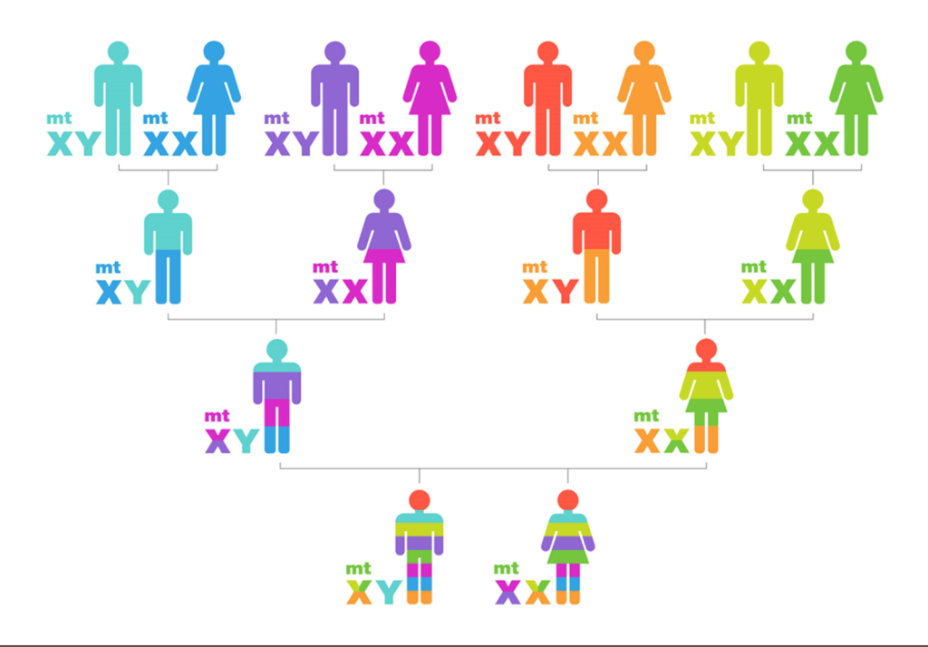 Y-kromosomen ger faderslinjen och Mitokondrien moderslinjen