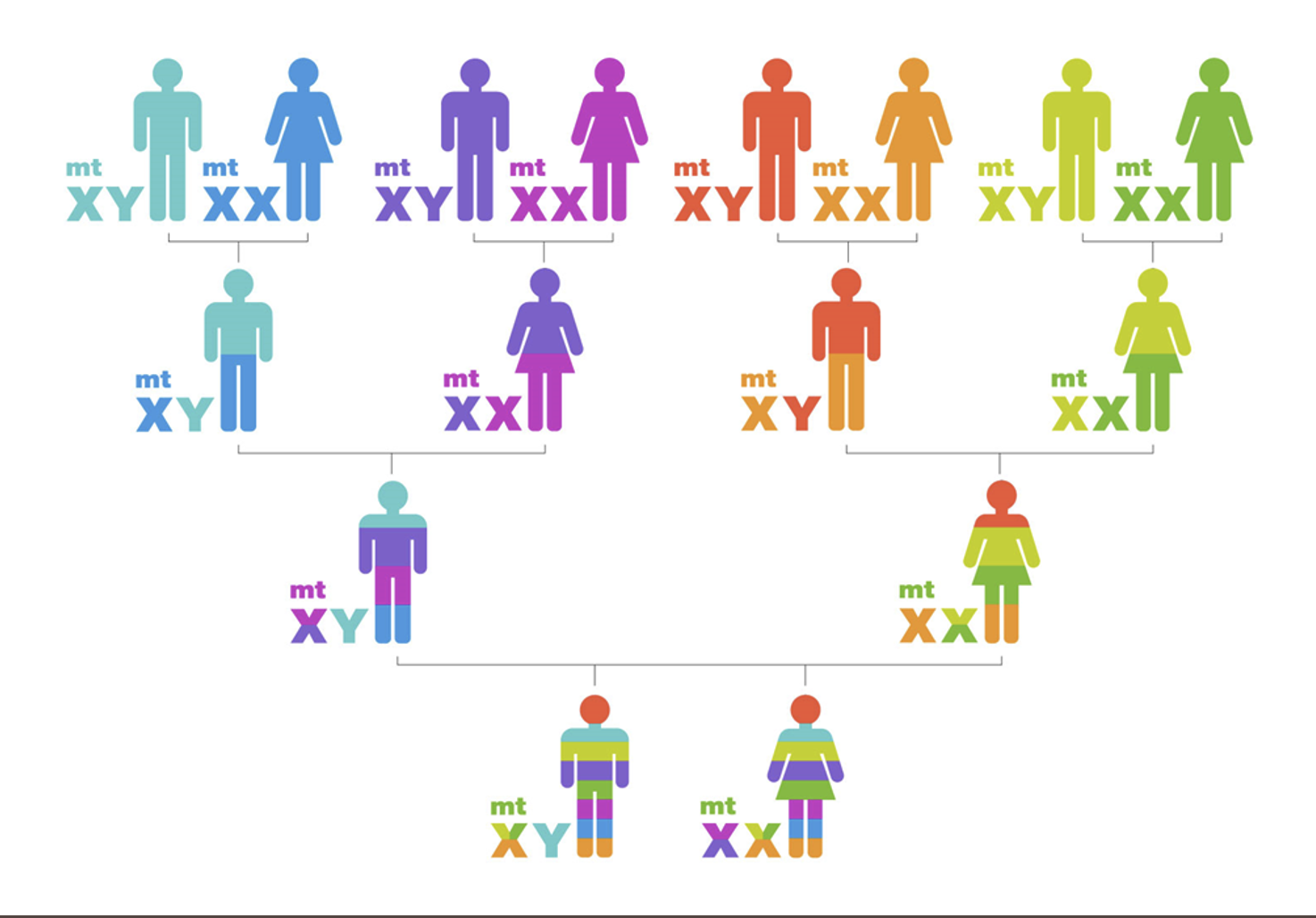 Y-kromosomen ger faderslinjen och Mitokondrien moderslinjen